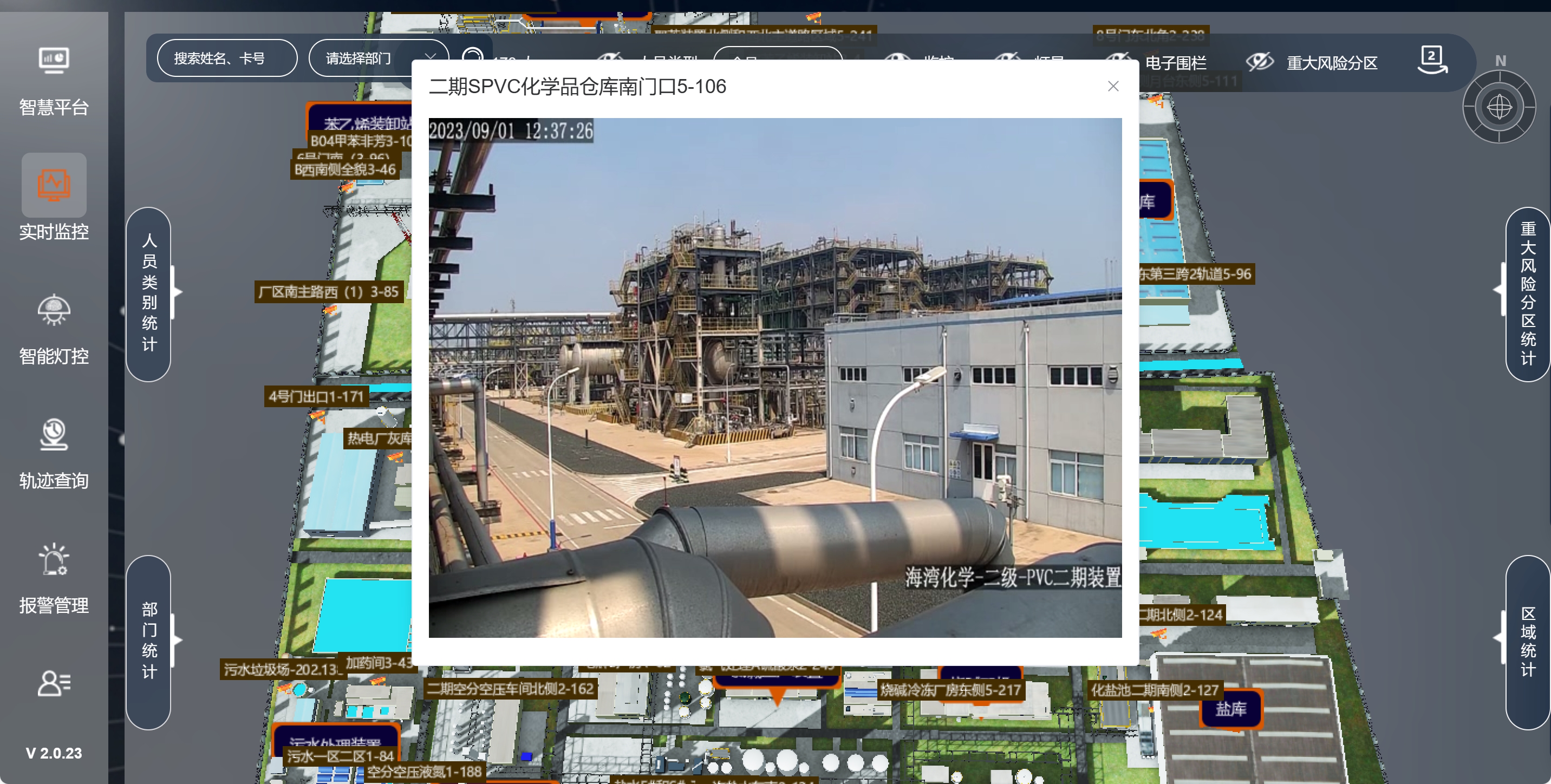 系統針對超員、脫崗、滯留、靜止等異常情況,能夠自動識別并發出告警。同時,定位設備配備SOS緊急按鈕,人員遭遇險情時,按下按鈕即可向管理平臺發送求救信號,平臺實時鎖定人員位置,迅速聯動救援力量展開救援,極大增強了石油煉化廠應對突發事件的能力。
