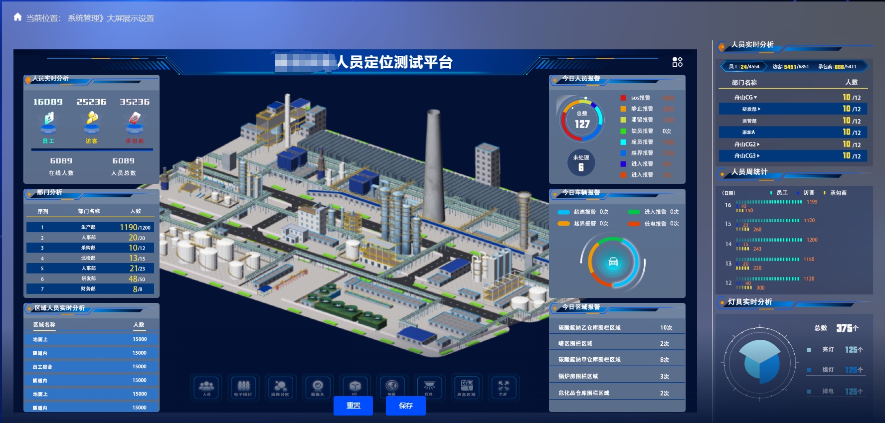 全面展示各區域人員分布及報警信息,各類信息以表格、熱力圖形式展現。