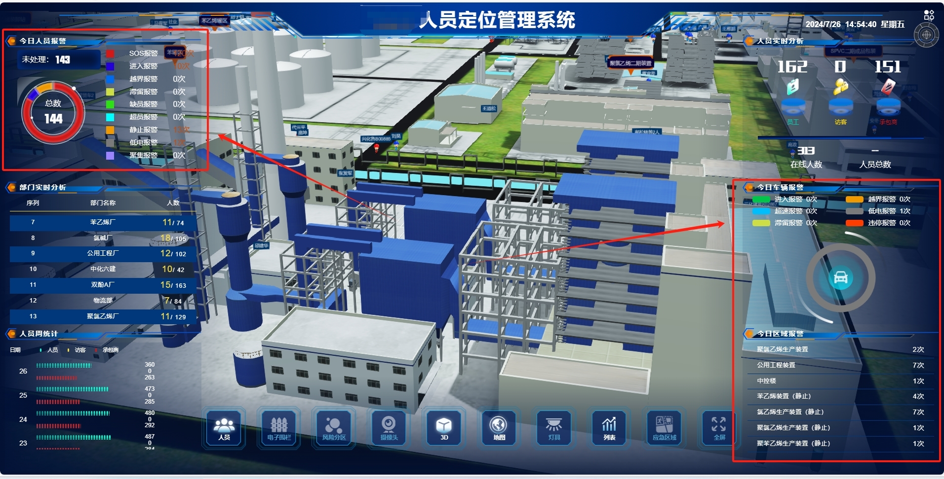 系統(tǒng)可在2D/3D電子地圖上實(shí)時(shí)顯示人員位置分布,支持分樓層、分車間查看,管理人員能夠?qū)γ總€(gè)人進(jìn)行實(shí)時(shí)位置追蹤。這使得管理人員能隨時(shí)掌握員工在廠區(qū)內(nèi)的具體位置,便于進(jìn)行生產(chǎn)調(diào)度和安全管理。例如,當(dāng)需要緊急調(diào)配人員處理突發(fā)情況時(shí),可迅速在地圖上找到合適人員,并指揮其前往事發(fā)地點(diǎn)。