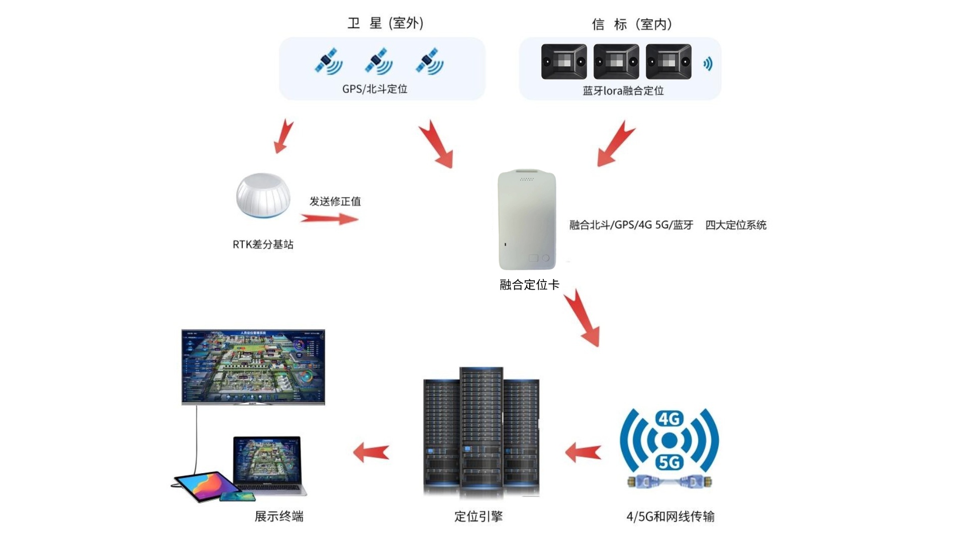 室內(nèi)采用藍牙+LoRa定位,室外采用GPS/北斗RTK差分定位,系統(tǒng)拓?fù)鋱D如下: