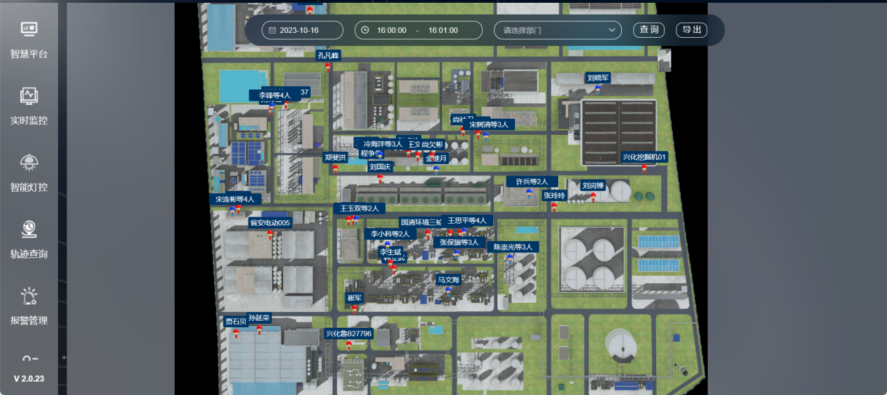 系統(tǒng)支持在工廠2D/3D電子地圖上實時顯示人員位置分布,可分樓層、分車間顯示;可對每個人的實時軌跡進行跟蹤,實現(xiàn)了對人員位置的實時追蹤和展示。