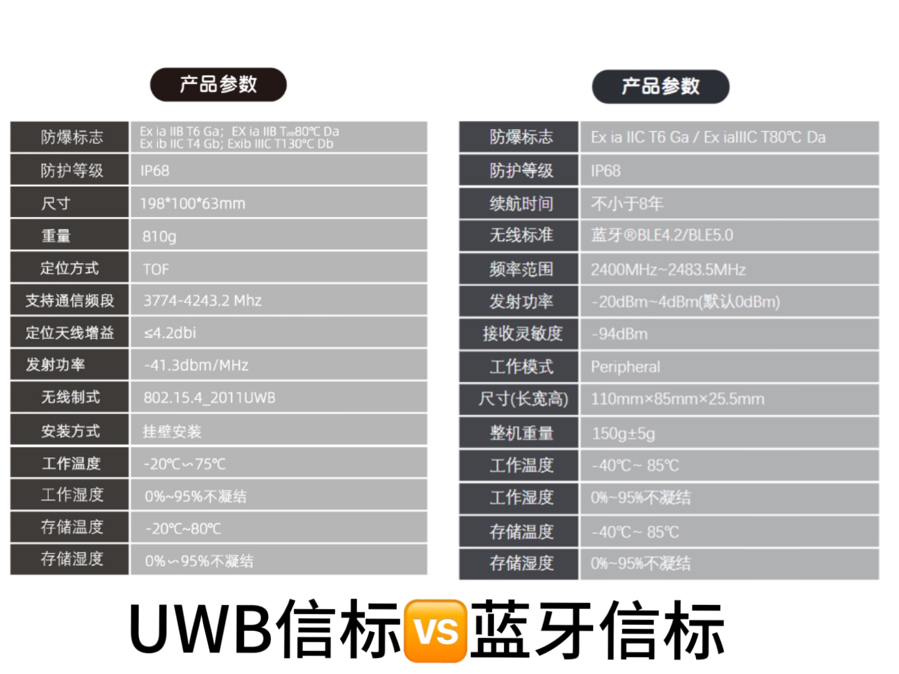 UWB信標(biāo)和藍(lán)牙信標(biāo)的產(chǎn)品參數(shù)對(duì)比: