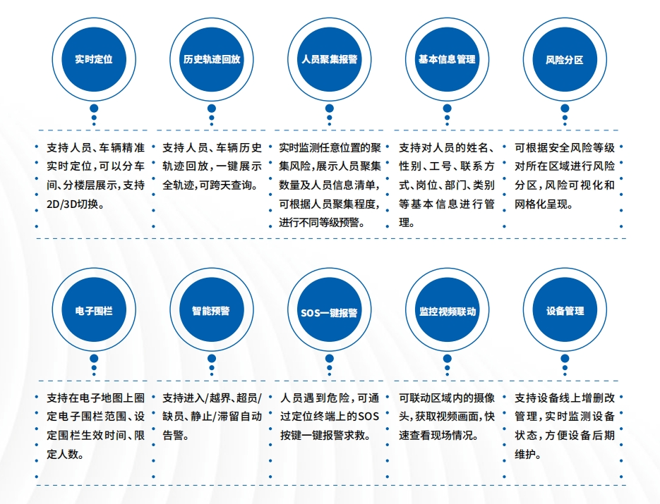 該系統能夠精確追蹤和記錄人員的移動軌跡,提供位置查詢、歷史軌跡回放、緊急報警、區域管控等功能,幫助管理者實現對人員的高效管理和即時響應,有效預防安全事故,提升應急處理能力。