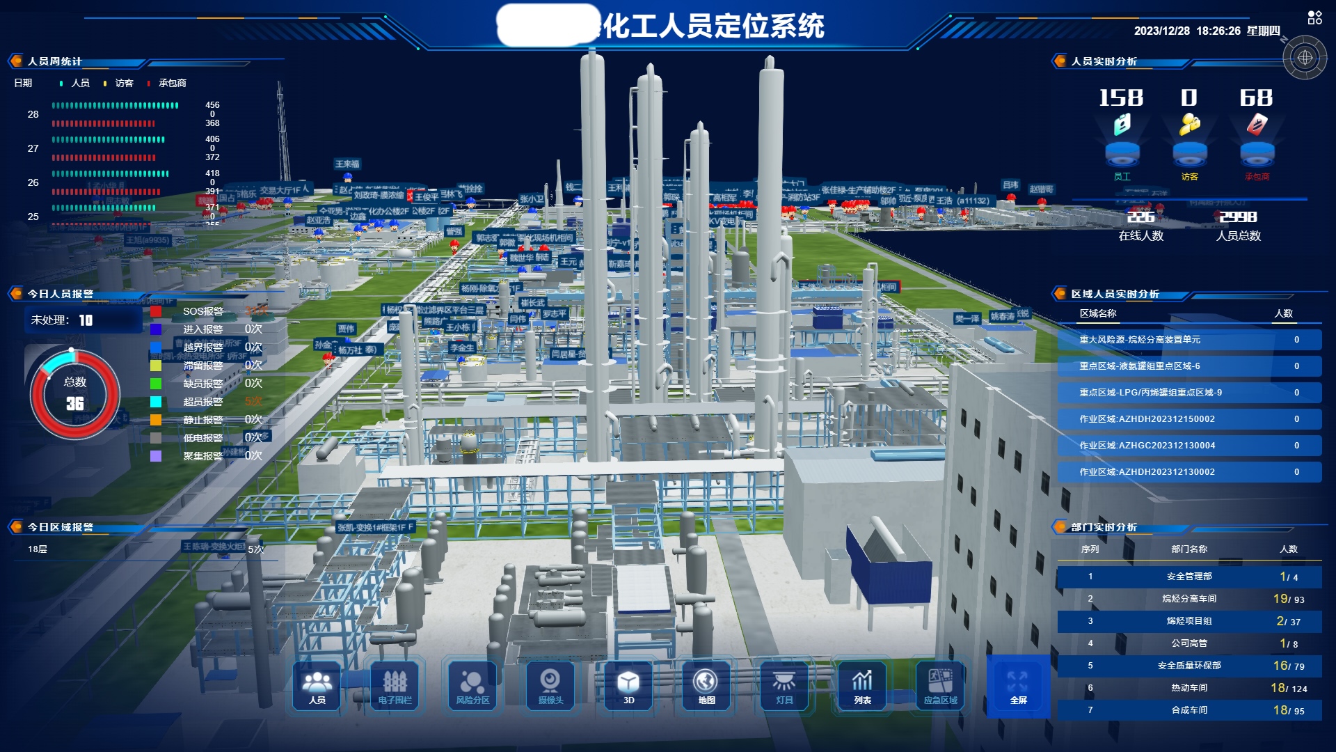 系統(tǒng)能夠?qū)崟r捕捉并顯示園區(qū)每位工作人員的確切位置,實現(xiàn)高精度定位,確保人員位置的實時掌握。