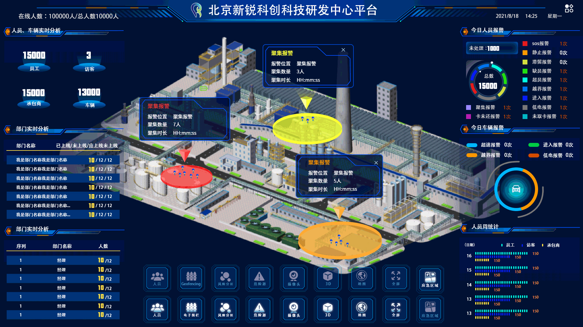 GIS數據全面可視化展示,直觀掌握各區域人員、車輛分布及報警信息。